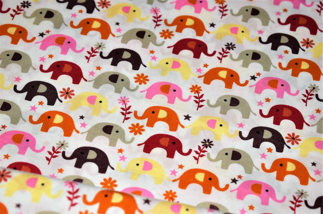 Printed Poplin, 100% Cotton, Elephant Print Fabric, 112 cm width