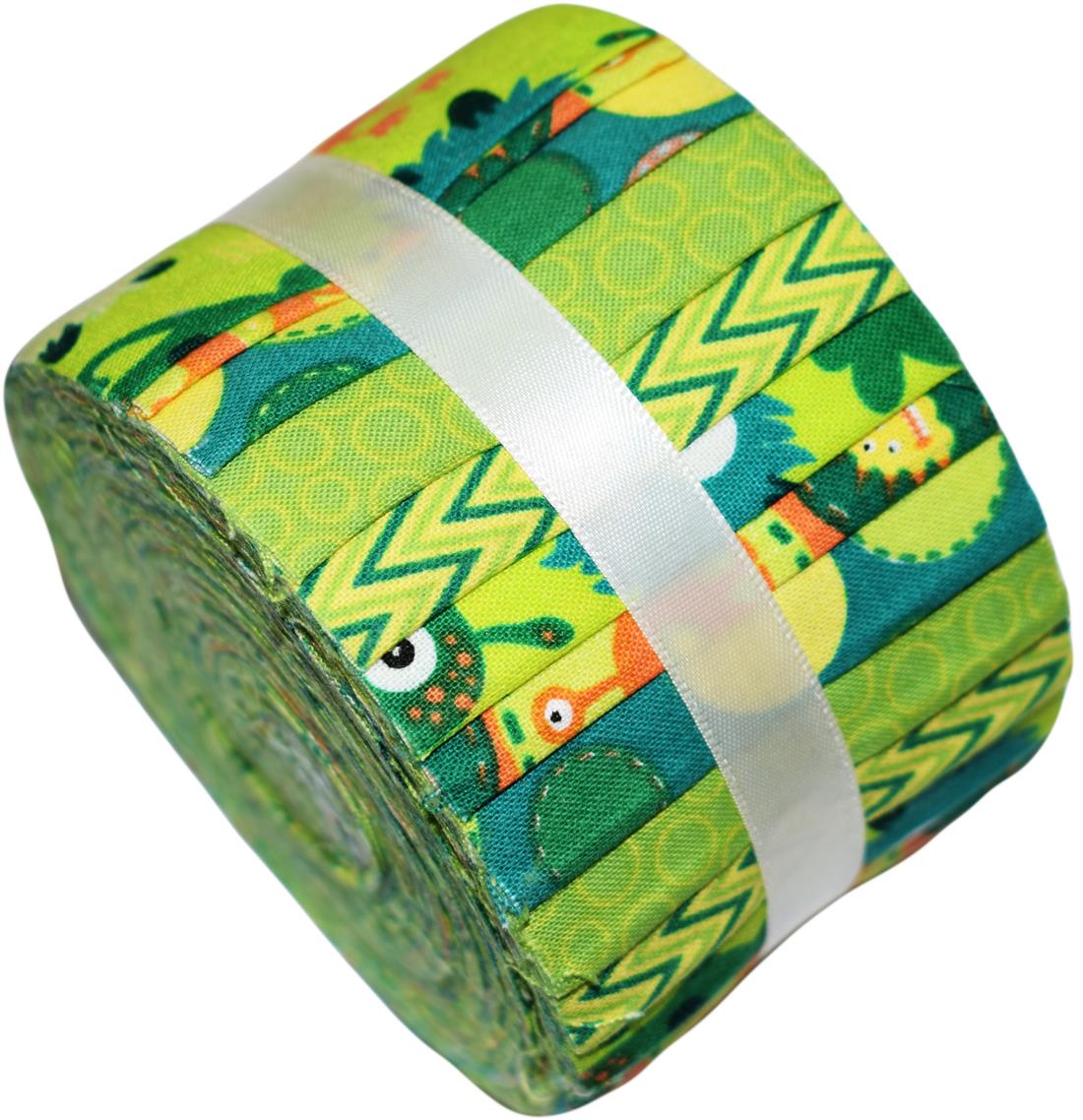 Mini Jelly Rolls. Bombay Stores Fabrics are happy to bring you 'Monster Mayhem' Mini Jelly Rolls. The fabric pack consists of 20 strips of mixed 'Monster Mayem' Crafting cotton quality fabrics. Size per strip is 2.5"x45".Total fabric in the pack is Approximately 1.25 meters.