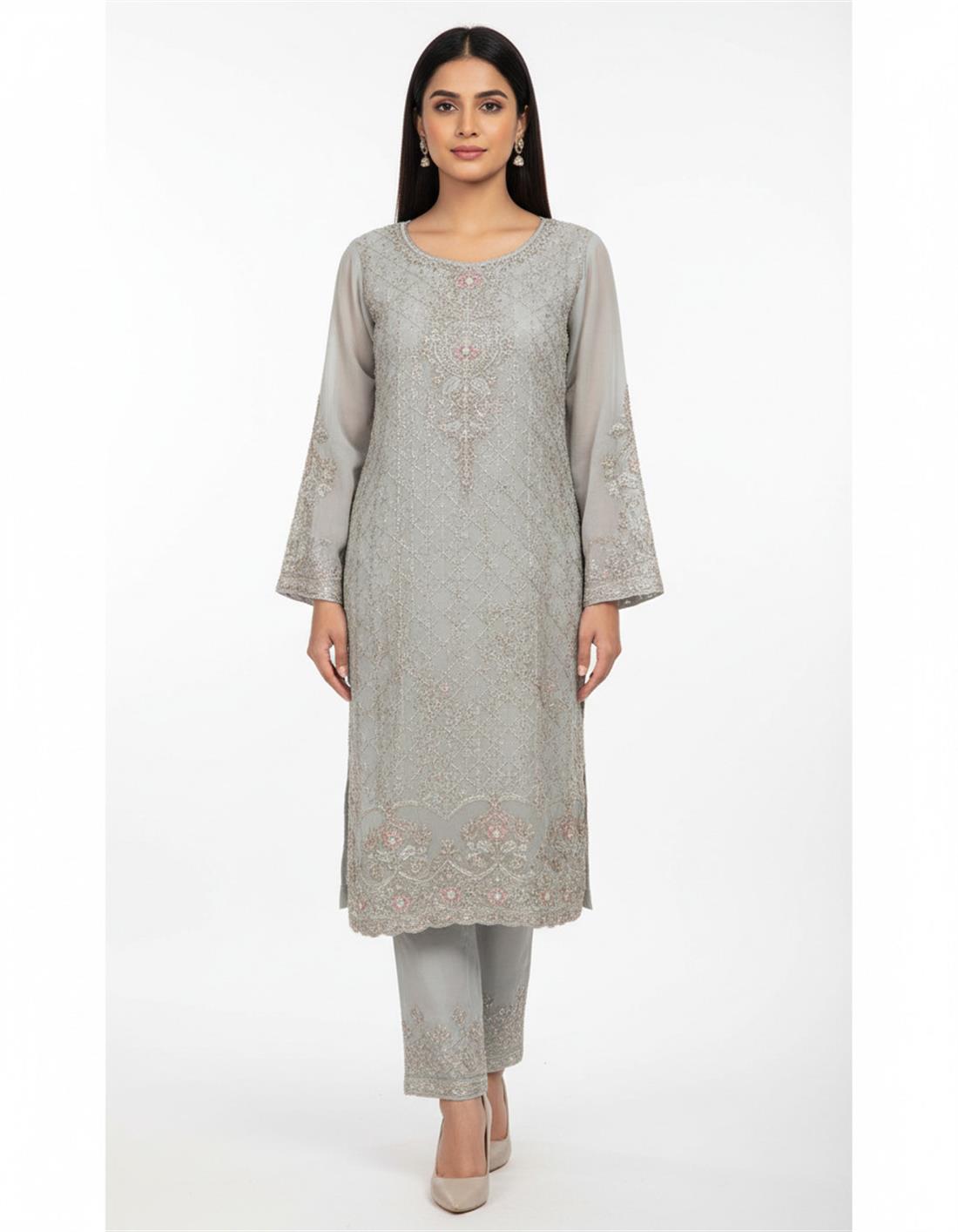 Embroidered Chiffon Shirt With Delicate Handwork