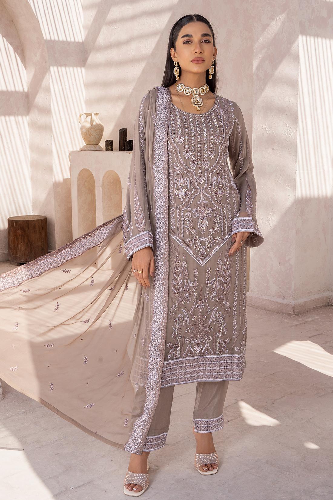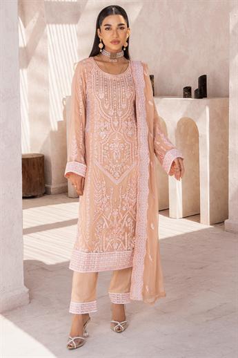 This incredible readymade luxury attire gives your festive look a boast of regality.This masterpiece comprises a chiffon shirt, embroidered chiffon dupatta and trouser.The chiffon fabric provides requisite comfort, while intricate embellishments and embroidery help you attain a sparkling look. The sequins and pearl will help you get sophisticated aesthetics with ease.