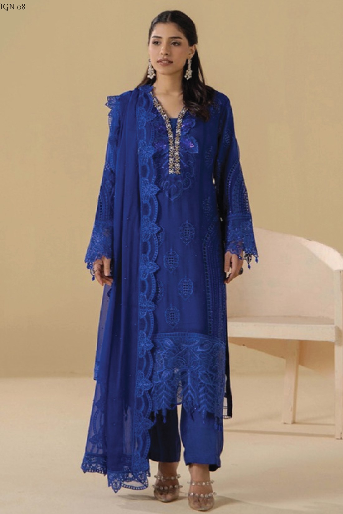 HEAVY EMBROIDERED CHIFFON 3 PIECE SUIT.