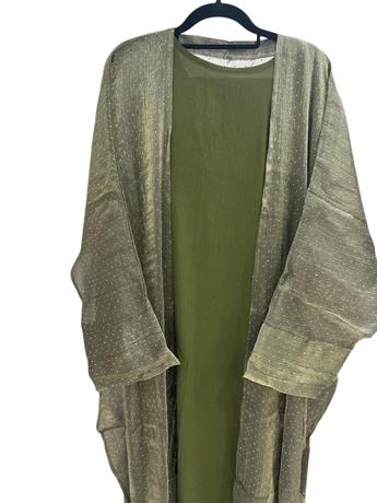 Elegant 2-Piece Set with Kaftan-Style Jacket and Matching Hijab This 2-piece set exudes understated elegance, designed to make you stand out with grace and sophistication. It features a plain, full-sleeve crepe silk inner lining paired with a flowing kaftan-style jacket that adds a touch of refined flair. The ensemble is completed with a matching hijab, offering a coordinated and modest look that's perfect for any occasion—from formal gatherings to festive events. Key Features: Timeless, modest, and effortlessly elegant—an essential addition to your occasion wear collection. Please note colours may vary slightly due to different screen settings, if you have any doubt about a certain colour or shade, please let us know via live chat, phone or email and we will do our very best to help you choose.